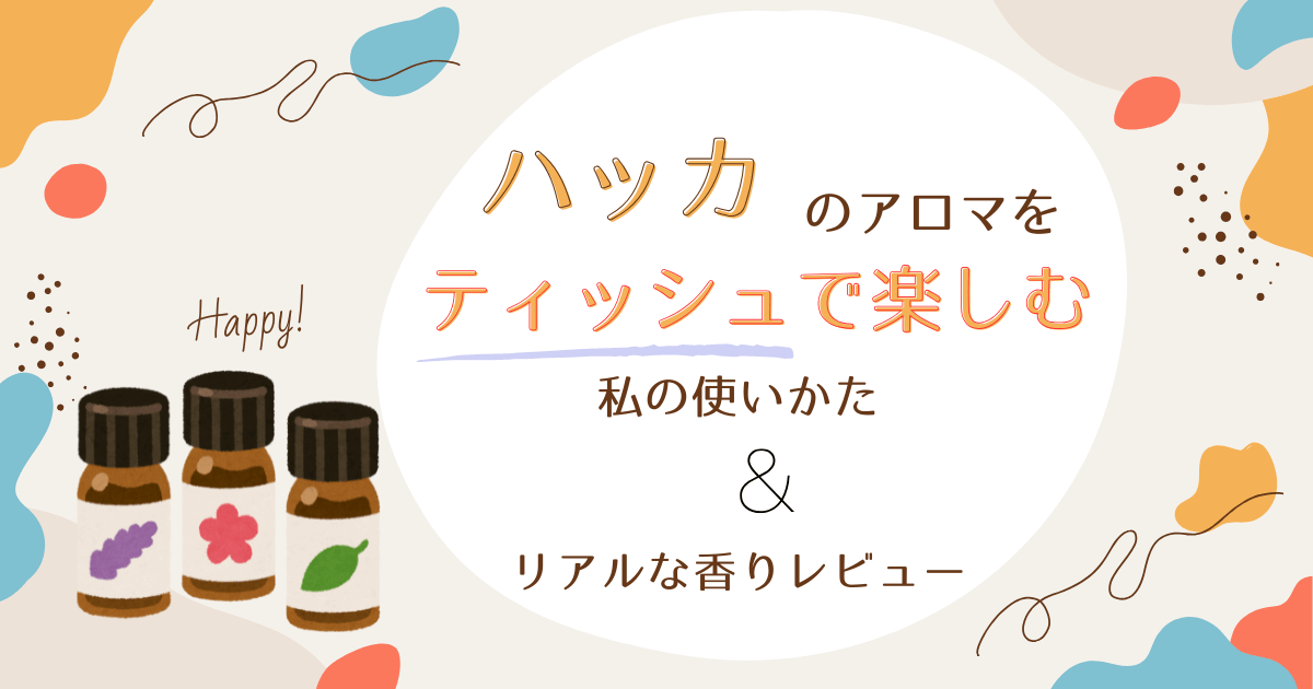 本記事ではティシュにハッカのアロマオイルを落とし、使ってみた正直な感想や検証してわかった持続時間などをまとめています。